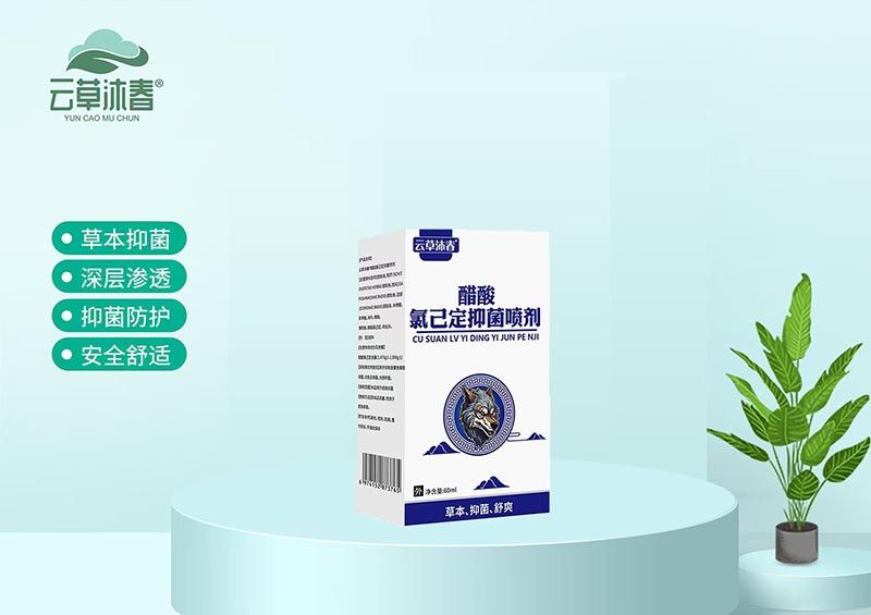 天山雪蓮(SAUSSUREAEINVOLUCRATAEHERBA)提取液、薰衣草(LavandulaangustifoliaMill.)提取液、黃柏(PHELLODENDRICHINENSISCORTEX)提取液、忍冬藤(LONICERAEJAPONICAECAULIS)提取液,醋酸氯己定,殼聚糖,薄荷腦,冰片,甘油,純化水。