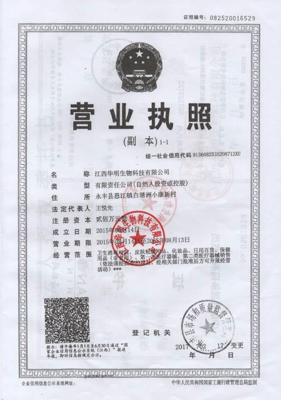 江西華明生物科技有限公司座落中國山清水冽、士美文秀的歐陽修故鄉(xiāng),有“藥業(yè)強縣”譽滿江南之稱 的江西省永豐縣。是一家充滿朝氣與活力的新型的現(xiàn)代高科技企業(yè)。擁有雄厚的技術(shù)、強大的銷售網(wǎng)絡和優(yōu)秀的市場營銷人才,奉行“質(zhì)量,客戶為本”的經(jīng)營理念,堅持以人才為基礎(chǔ),以科技為先導,以嚴格的質(zhì)量為要求,良好的售后服務和可靠的信譽為后盾,不斷實施科技創(chuàng)新,走現(xiàn)代化道路,并依托科研院所聯(lián)合開發(fā),按著“淘汰、提高、發(fā)展”的原則,實現(xiàn)并做到“生產(chǎn)一批,開發(fā)一批,儲備一批,研制一批”。以品質(zhì)監(jiān)控為手段,全力確保質(zhì)量,使各類產(chǎn)品成為同行中佼佼者。