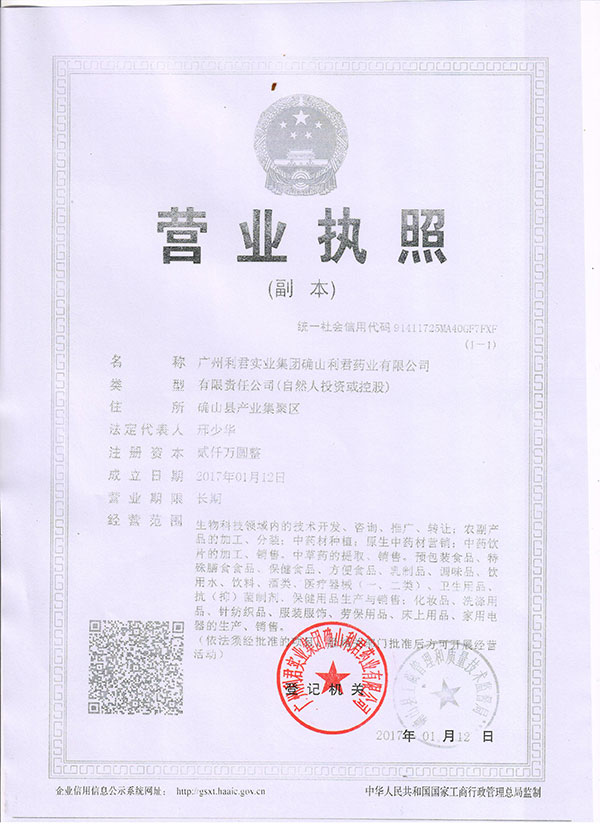 | 公司名稱:廣州利君實業(yè)集團確山利君藥業(yè)有限公司 | |