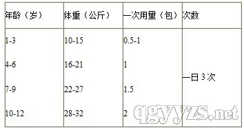 用法用量:口服。溫水沖服。12歲以下兒童見下表