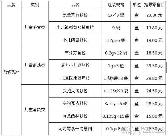 好酷娃®旗下系列兒童用藥大品種、黃金單品;