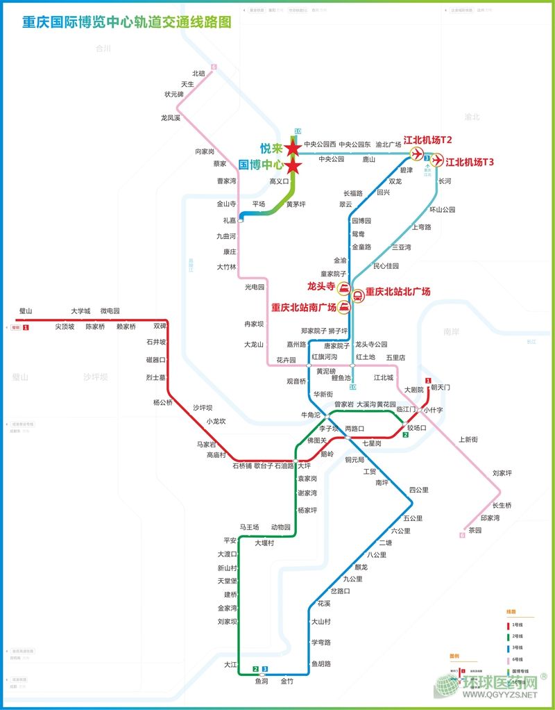 10號(hào)線:鯉魚池—重慶北站北廣場(chǎng)——江北機(jī)場(chǎng)T3/T2航站樓—悅來(1號(hào)出口國博中心)