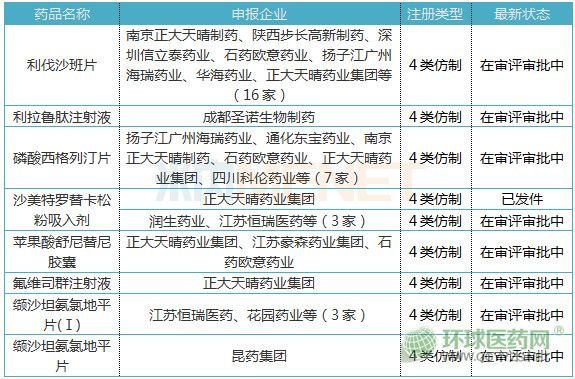 表2:上述重磅產(chǎn)品仿制申請情況