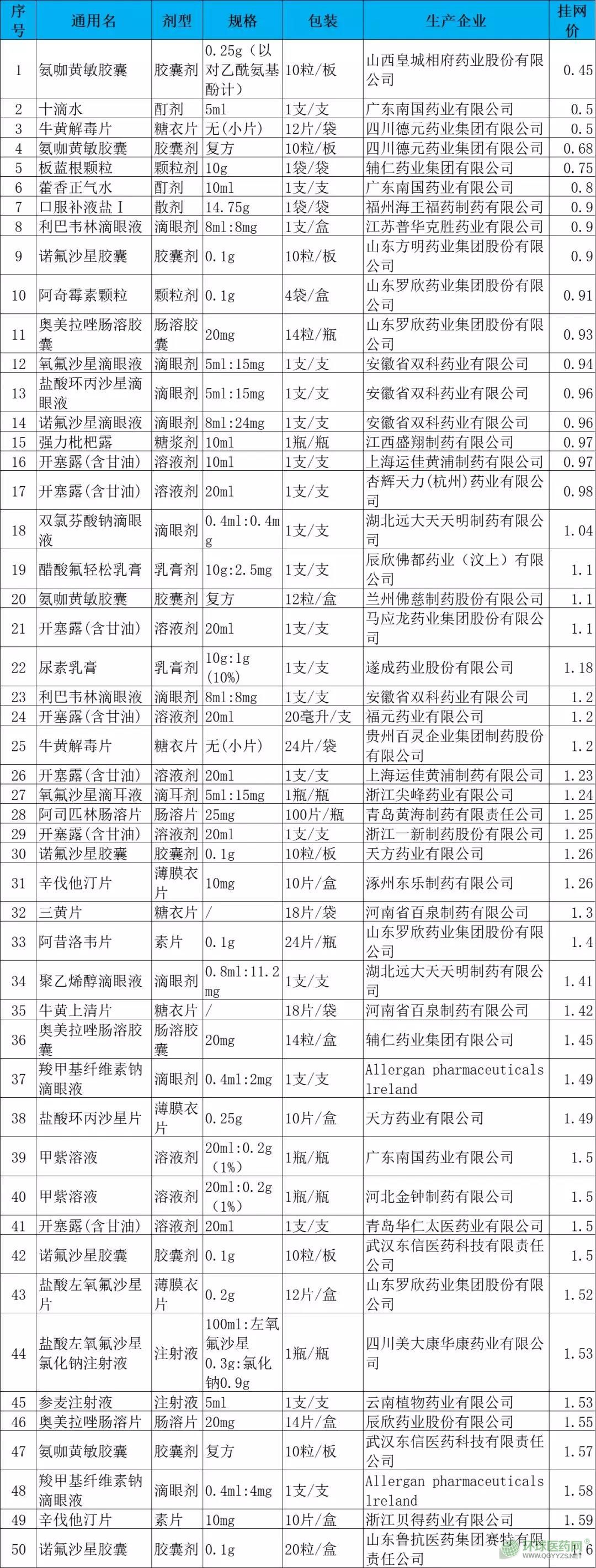 太低了!149個(gè)藥店常賣(mài)藥掛網(wǎng)價(jià)不足3元(文末附名單),涉氨咖黃敏膠囊、板藍(lán)根顆粒、藿香正氣水、牛黃上清片、牛黃解毒片、維C銀翹片....
