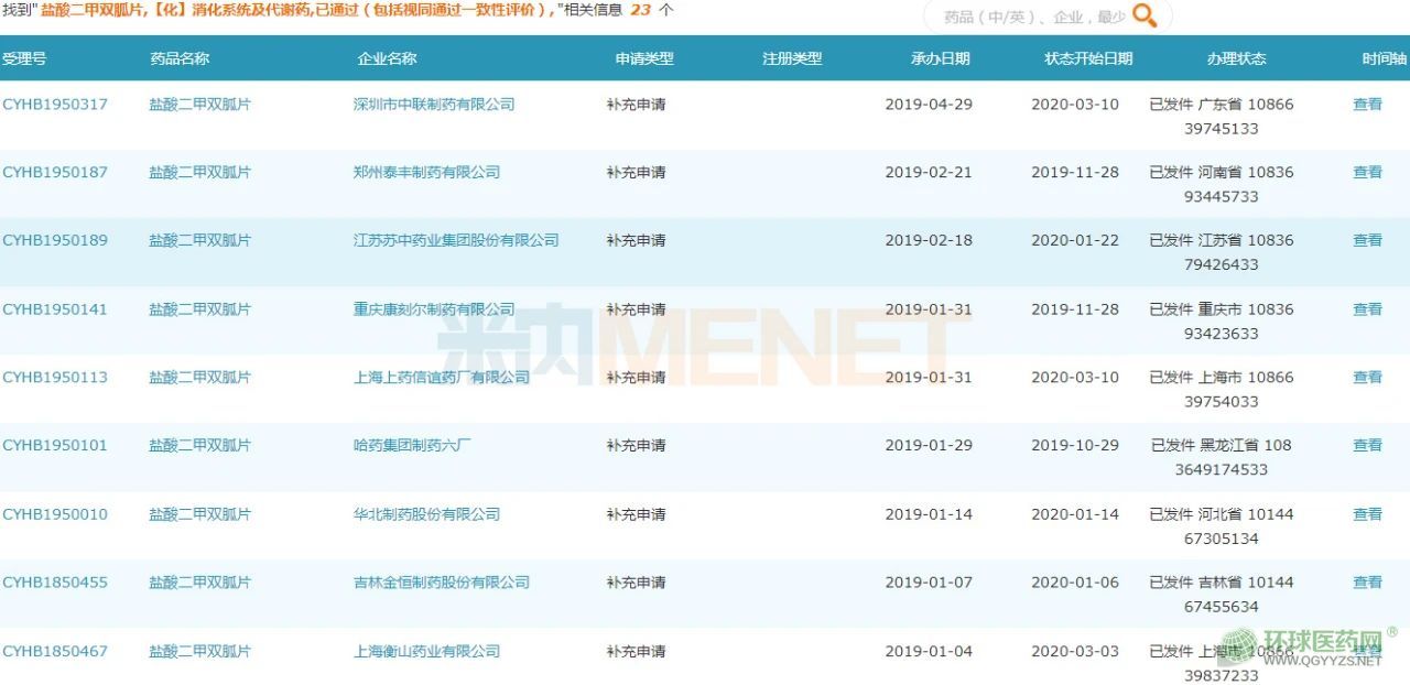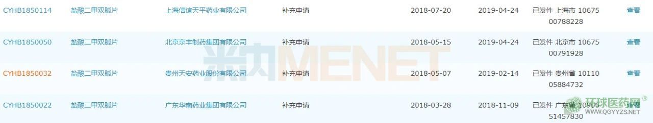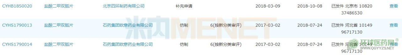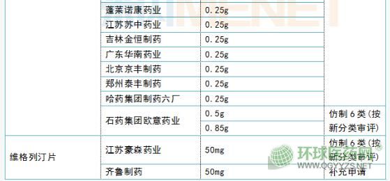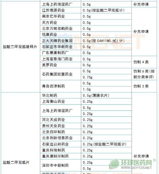 在一致性評價方面,鹽酸二甲雙胍片已有23個品規(guī)過評,涉及石藥集團歐意藥業(yè)、蘇中藥業(yè)、華北制藥、哈藥集團制藥六廠等20家企業(yè)。其中,石藥集團歐意藥業(yè)是以仿制6類(按新分類審評)申報獲批的企業(yè)。目前,還有江蘇天士力帝益藥業(yè)、哈爾濱珍寶制藥、山西振東安特生物制藥、悅康藥業(yè)等11個受理號的補充申請在審評審批中(在藥審中心)。