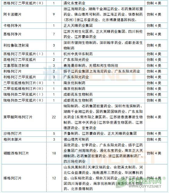 日前,上海醫(yī)藥全資子公司上海上藥信誼藥廠的鹽酸二甲雙胍片(0.5g)獲批通過一致性評價。米內(nèi)網(wǎng)數(shù)據(jù)顯示,2018年中國公立醫(yī)療機構(gòu)終端糖尿病用藥銷售額突破500億元。截至目前,糖尿病用藥有15個產(chǎn)品通過(包括視同通過)一致性評價,其中,格列美脲片、鹽酸二甲雙胍緩釋片、鹽酸二甲雙胍片的過評企業(yè)最多。此外,正在審評的糖尿病用藥一致性評價申請有37個產(chǎn)品,涉及受理號超過150個,苯甲酸阿格列汀片、磷酸西格列汀片、維格列汀片等5個產(chǎn)品競爭激烈,受理號數(shù)量均超過10個,涉及國藥集團國瑞藥業(yè)、廣東東陽光藥業(yè)、石藥集團歐意藥業(yè)、揚子江藥業(yè)集團廣州海瑞藥業(yè)、亞寶藥業(yè)等企業(yè)。而硫辛酸注射液、利拉魯肽注射液和艾塞那肽注射液也在審評審批中,誰將率先拔得頭籌呢?我們拭目以待。