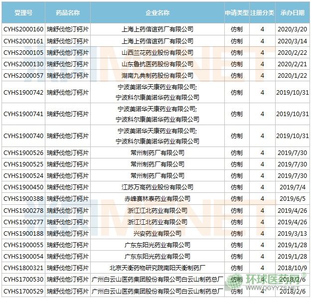 瑞舒伐他汀鈣片上市申請?jiān)趯徳u企業(yè)