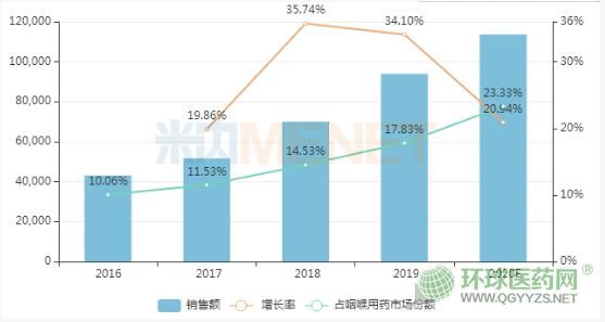 藍(lán)芩口服液具有清熱解毒、利咽消腫的功效,可用于急性咽炎、肺胃實(shí)熱證所致的咽痛、咽干、咽部灼熱等,為全國醫(yī)保乙類品種。近幾年來,藍(lán)芩口服液在中國城市實(shí)體藥店終端銷售額逐年上漲,占咽喉用藥市場(chǎng)比重逐年上升,預(yù)計(jì)2020年銷售額首次突破10億元,同比增長20.94%,占咽喉用藥市場(chǎng)比重23.33%。