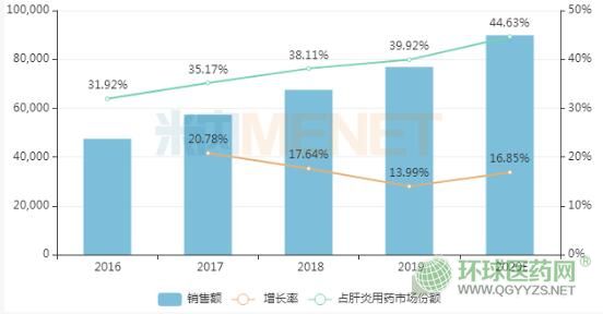 片仔癀具有清熱解毒、涼血化瘀、消腫止痛的功效,臨床上可用于癰疽疔瘡、無名腫毒、跌打損傷,對(duì)急性肝炎、眼炎、耳炎等一切炎癥引起的疼痛、發(fā)熱等癥也有很好的療效。米內(nèi)網(wǎng)數(shù)據(jù)顯示,在中國城市實(shí)體藥店終端肝炎用藥市場(chǎng)中,片仔癀一直高居榜首,且市場(chǎng)份額逐年上升,預(yù)計(jì)2020年將實(shí)現(xiàn)銷售收入近9億元,同比增長16.85%。