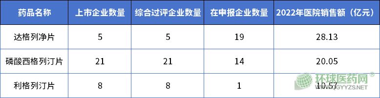 阿斯利康財(cái)報(bào)顯示,2022年達(dá)格列凈片全球銷售額高達(dá)43.81億美元,同比增長46%。據(jù)藥智數(shù)據(jù),在國內(nèi)市場,該產(chǎn)品于2019年通過談判納入國家醫(yī)保乙類目錄,2022年醫(yī)院市場銷售額達(dá)28.13億元,目前僅5家企業(yè)獲批,但申報(bào)企業(yè)高達(dá)19家。