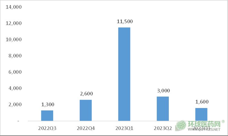 2022Q3-2023Q3瑪巴洛沙韋等級醫(yī)院銷售數(shù)據(jù)(單位:萬元)