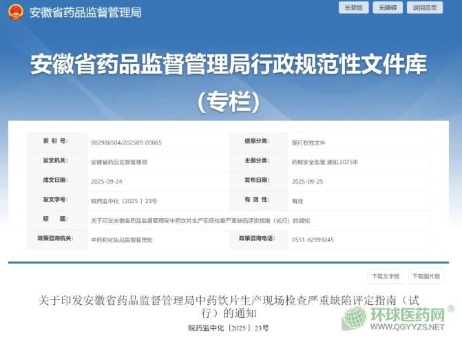 安徽省藥品監(jiān)督管理局中藥飲片生產(chǎn)現(xiàn)場(chǎng)檢查嚴(yán)重缺陷評(píng)定指南(試行)