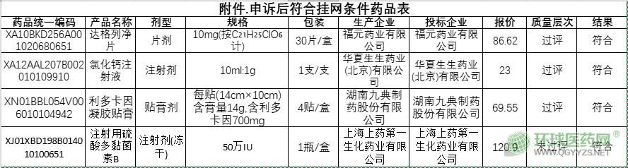 附件:申訴后符合掛網(wǎng)條件藥品表