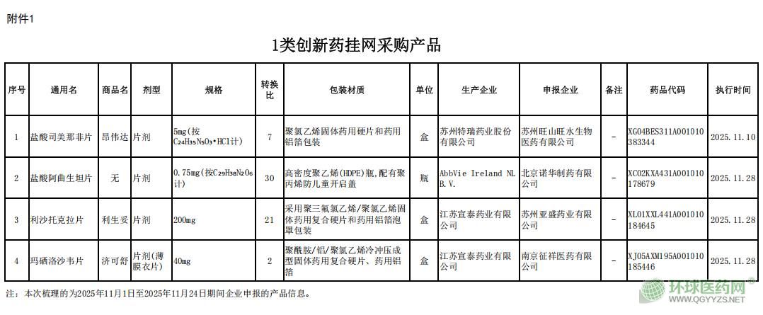現(xiàn)公布2025年11月符合掛網(wǎng)采購等要求的產(chǎn)品(詳見附件),新納入平臺(tái)掛網(wǎng)采購的產(chǎn)品,相關(guān)生產(chǎn)企業(yè)應(yīng)按照《關(guān)于開展在線交易藥品配送關(guān)系調(diào)整有關(guān)工作的通知》要求,于規(guī)定時(shí)間內(nèi)在浙江省“智慧醫(yī)!闭胁勺酉到y(tǒng)相關(guān)模塊與配送企業(yè)確立好產(chǎn)品的配送關(guān)系。