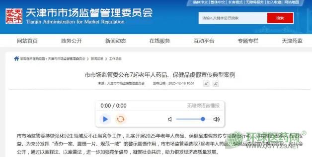 天津市市場監(jiān)管委持續(xù)強(qiáng)化民生領(lǐng)域反不正當(dāng)競爭工作,扎實(shí)開展2025年老年人藥品、保健品虛假宣傳專項(xiàng)整治行動(dòng),切實(shí)維護(hù)老年人合法權(quán)益。為充分發(fā)揮“查辦一案、震懾一片、規(guī)范一域”的警示震懾作用,市市場監(jiān)管委選取7起老年人藥品、保健品虛假宣傳典型案例,向社會公開,通過以案釋法、以案普法,進(jìn)一步加強(qiáng)競爭倡導(dǎo),凝聚社會共識,助力銀發(fā)經(jīng)濟(jì)高質(zhì)量發(fā)展。