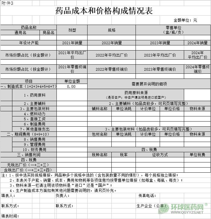 3.藥品成本和價格構成情況表