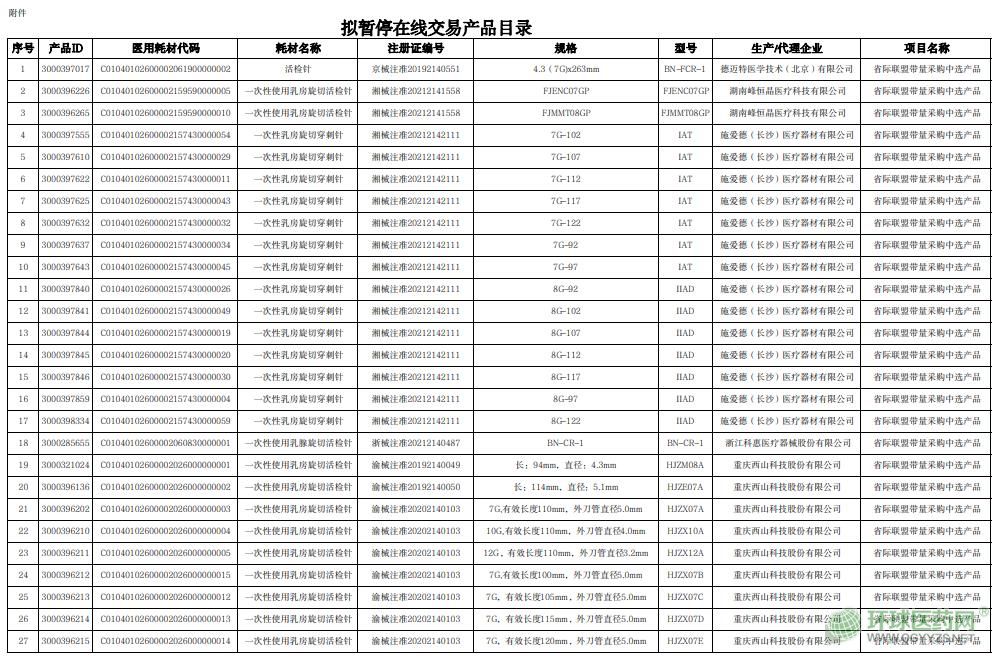 根據(jù)我省醫(yī)用耗材集中采購工作有關(guān)規(guī)定,擬暫停施愛德(長沙)醫(yī)療器材有限公司等部分醫(yī)用耗材產(chǎn)品的在線交易,具體產(chǎn)品見附件,F(xiàn)予以公示,公示期為2025年12月24日至12月30日。