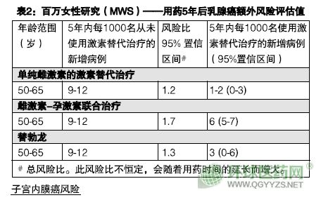 使用單純雌激素和替勃龍治療的患者,其診斷乳腺癌增加的風險顯著低于接受雌激素-孕激素聯(lián)合治療的風險。
