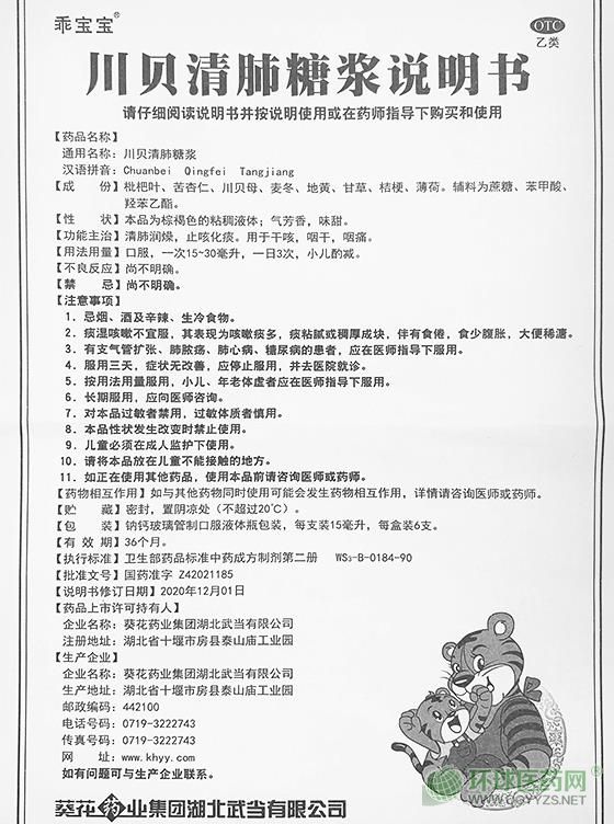葵花小兒川貝清肺糖漿說明書(乖寶寶牌)