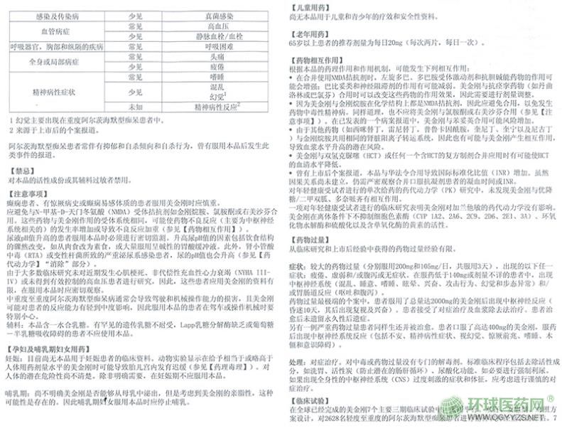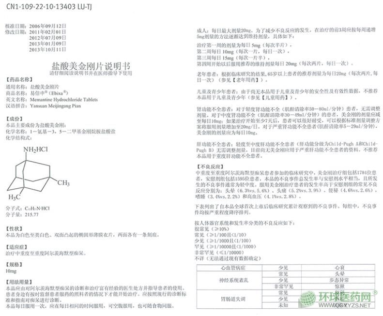 鹽酸美金剛片(易倍申)說(shuō)明書(shū)(進(jìn)口)(2013版)