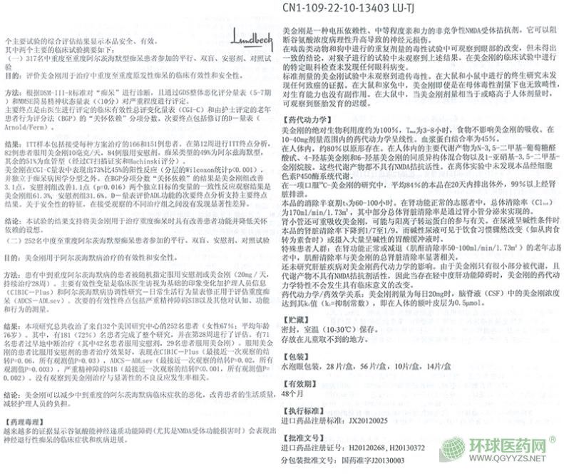 鹽酸美金剛片(易倍申)外包裝(進(jìn)口)