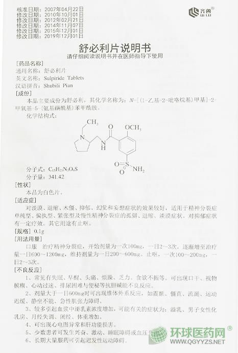 【成份】本品主要成分為舒必利,其化學(xué)名稱為:N-[甲基-(1-乙基-2-吡咯烷基)]-2-甲氧基-5-氨基磺酰基)-苯甲酰胺。