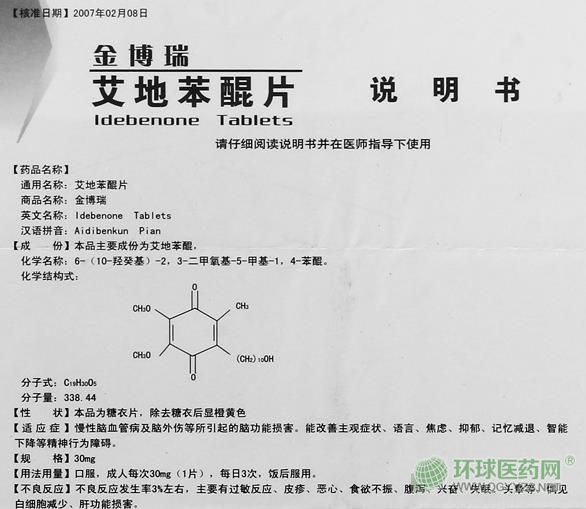 深圳海王藥業(yè)金博瑞艾地苯醌片說明書(2007年版)