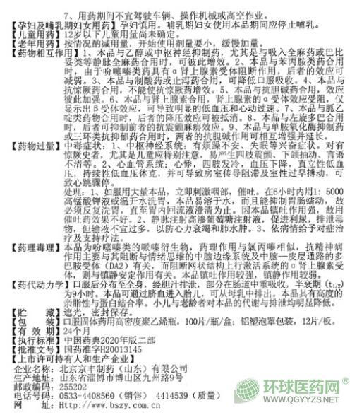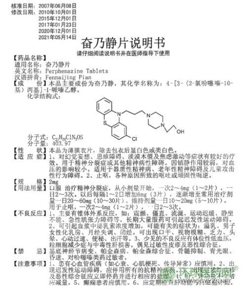 奮乃靜片(顏山)說明書