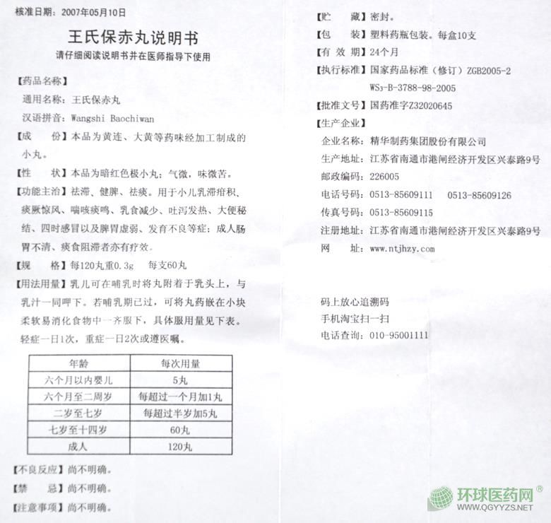 【藥品名稱】通用名稱:王氏保赤丸