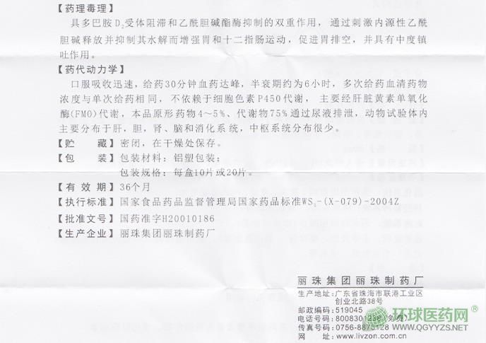 麗珠鹽酸伊托必利片說明書