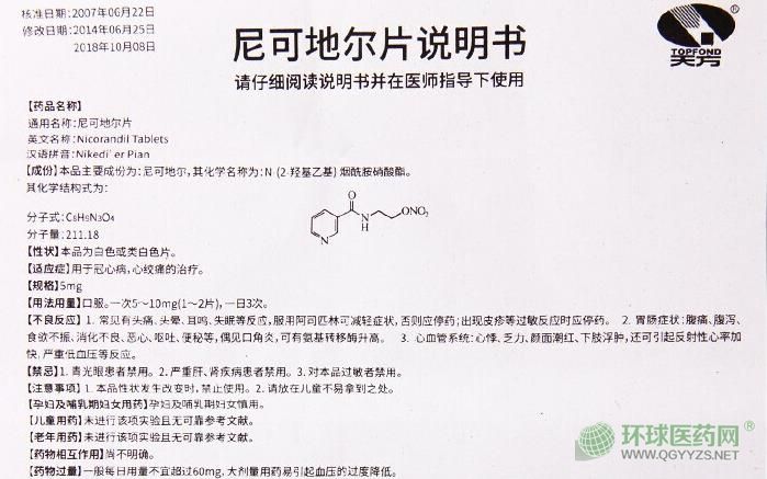 【成份】本品主要成份為尼可地爾,化學(xué)名稱為:乙-煙酰胺基硝酸乙酯。