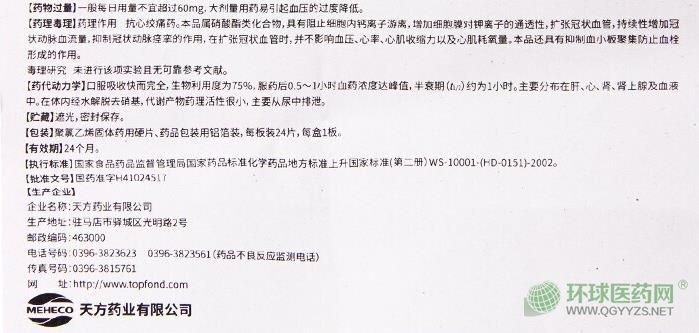 【適應(yīng)癥】適用于冠心病,心絞痛的治療。對于勞力型、自發(fā)型、梗死后或混合型心絞痛均有效。對伴有心房顫動、心臟擴大的心絞痛、對其它抗心絞痛藥物需慎用的患者,可選用本品。