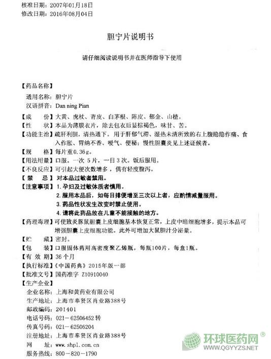 上海和黃藥業(yè)上藥牌膽寧片說明書圖片版