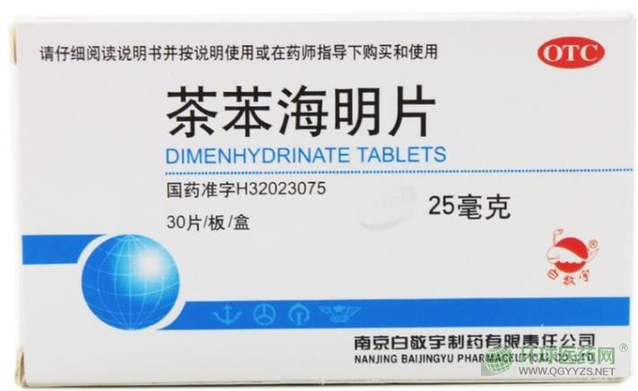 【成份】本品主要成分是茶苯海明;瘜W(xué)名為:1,3-二甲基-8-氯-1H-2,6-二酮和N,N-二甲基-2-(二苯基甲氧基)乙胺。
