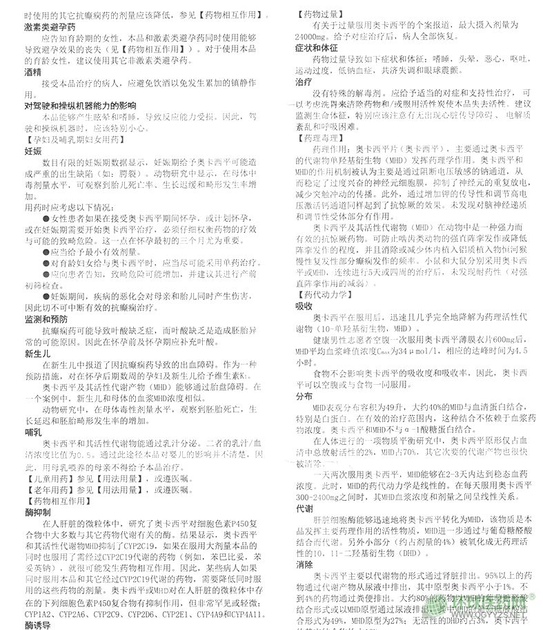人福藥業(yè)萬(wàn)儀奧卡西平片說(shuō)明書(shū)文字版