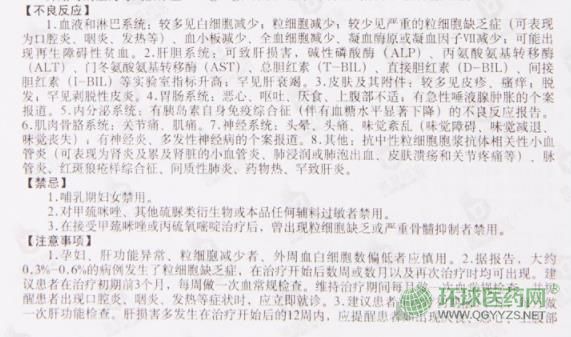 血液和淋巴系統(tǒng):較多見白細(xì)胞減少;粒細(xì)胞減少;較少見嚴(yán)重的粒細(xì)胞缺乏癥(可表現(xiàn)為口腔炎、咽炎、發(fā)熱等)、血小板減少、全血細(xì)胞減少、凝血酶原或凝血因子Ⅶ減少;可能出現(xiàn)再生障礙性貧血。