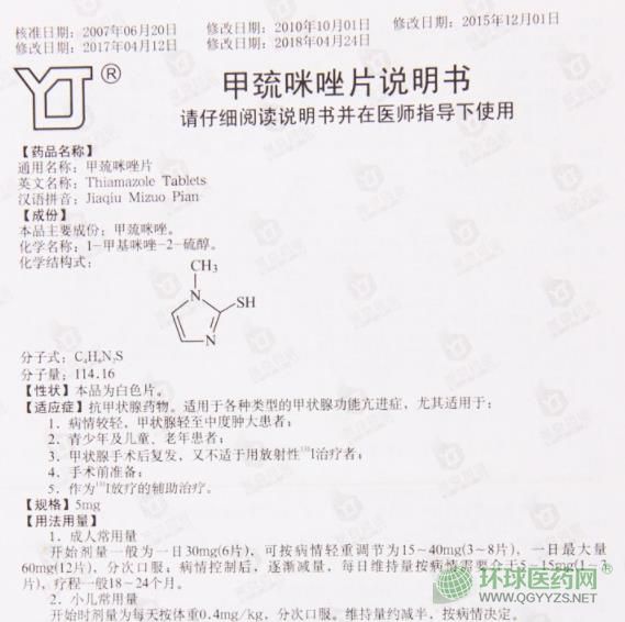 藥理作用:本品為抗甲狀腺藥物。其作用機(jī)制是抑制甲狀腺內(nèi)過氧化物酶,從而阻礙吸聚到甲狀腺內(nèi)碘化物的氧化及酪氨酸的偶聯(lián),阻礙甲狀腺素(T4)和三碘甲狀腺原氨酸(T3)的合成。動(dòng)物實(shí)驗(yàn)觀察到可抑制B淋巴細(xì)胞合成抗體,降低血循環(huán)中甲狀腺刺激性抗體的水平,使抑制性T細(xì)胞功能恢復(fù)正常。