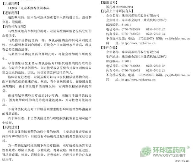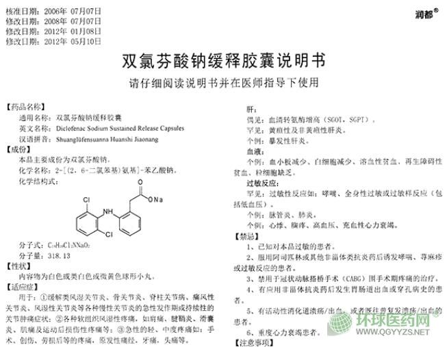 珠海潤都雙氯芬酸鈉緩釋膠囊說明書圖片版