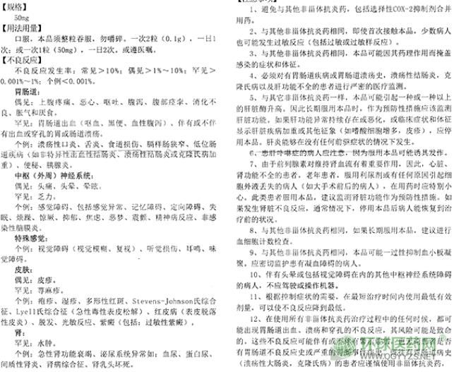 3、 與其他非甾體抗炎藥相同,本品可能因其藥理作用而掩蓋感染的癥狀和體征。
