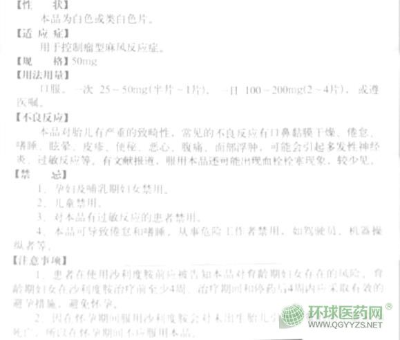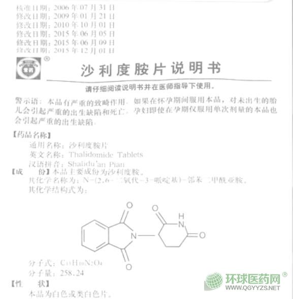 常藥反映亭沙利度胺片說明書文字版