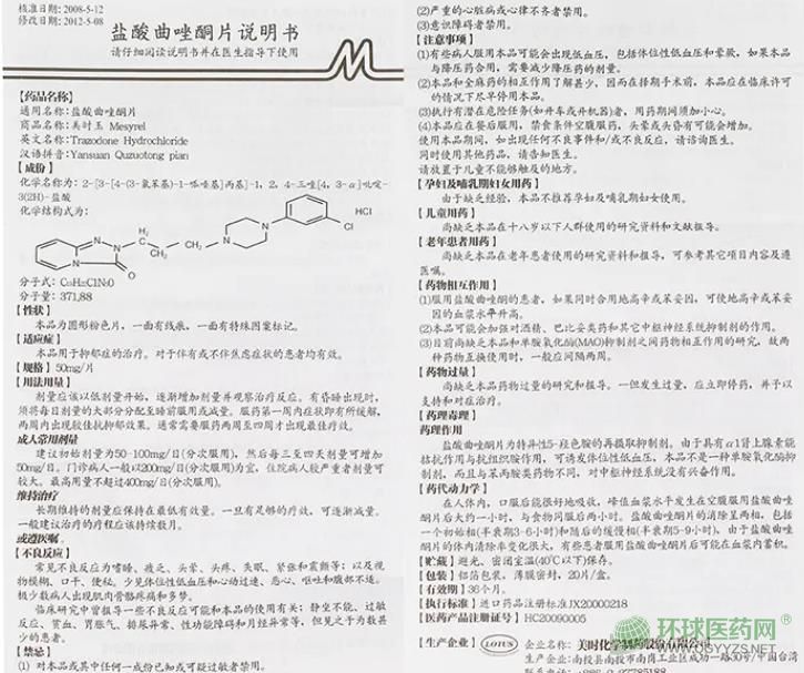 美時玉鹽酸曲唑酮片說明書圖片版(2012年版)