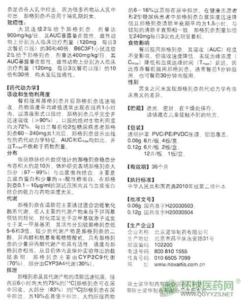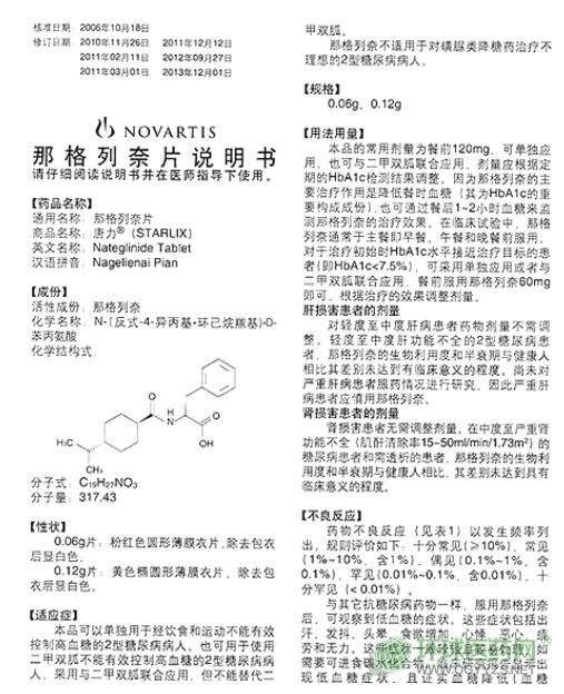 諾華制藥那格列奈片唐力說(shuō)明書圖片版(2013版)