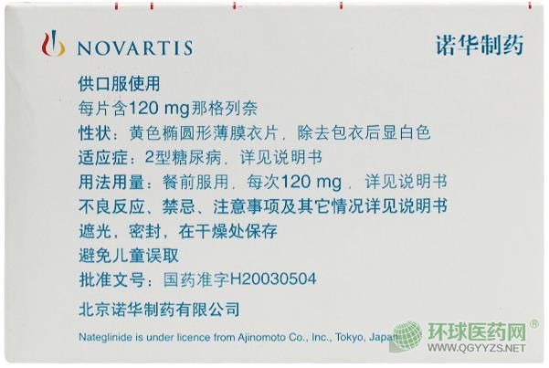 諾華制藥那格列奈片唐力說(shuō)明書文字版