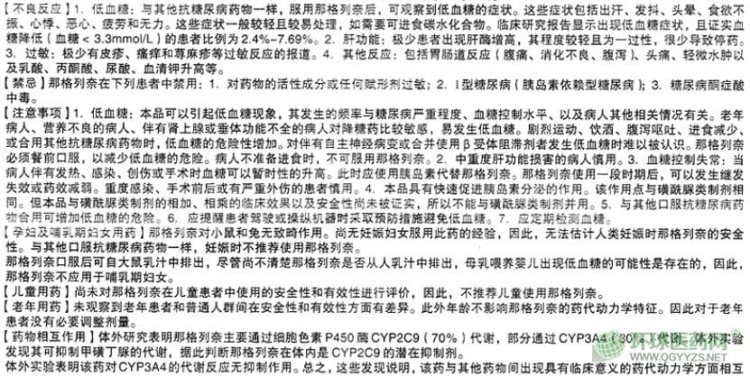 那格列奈不適用于對(duì)磺脲類(lèi)降糖藥治療不理想的2型糖尿病病人。