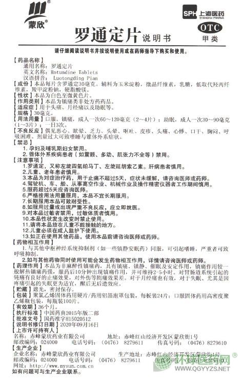 赤峰蒙欣羅通定片說明書圖片版(2020年版)