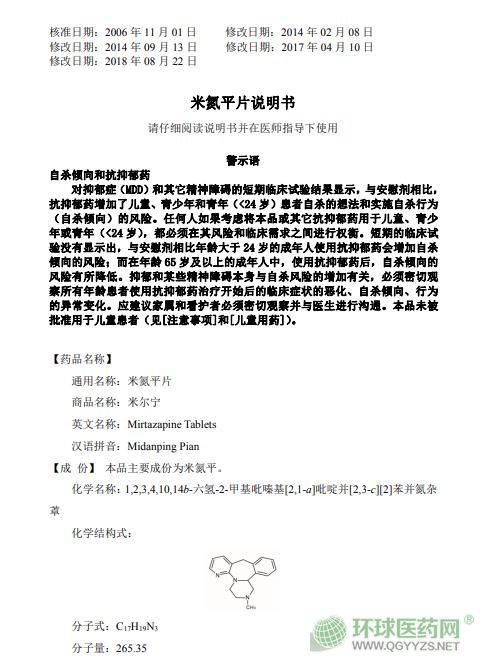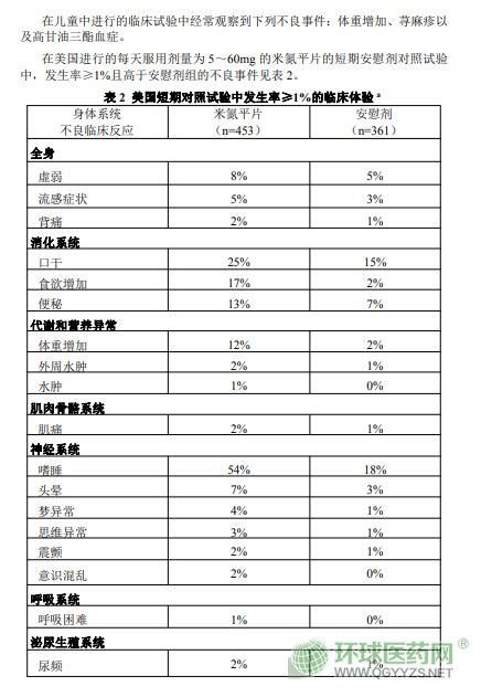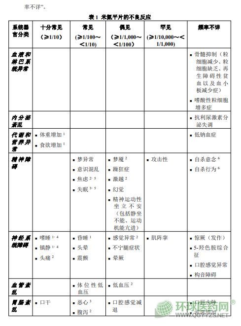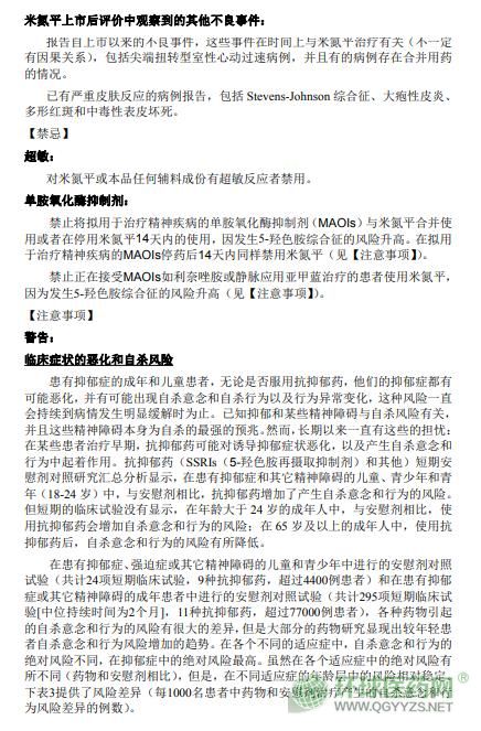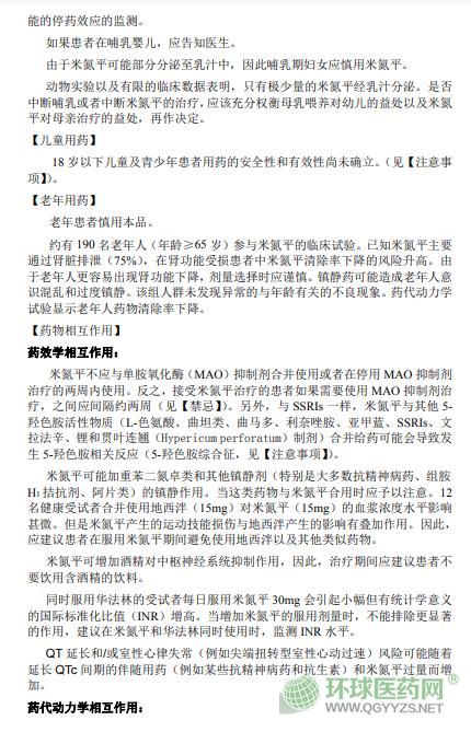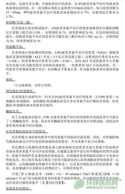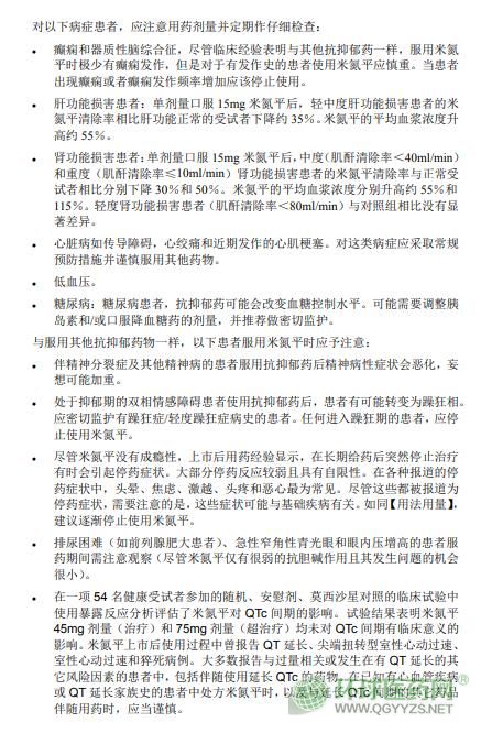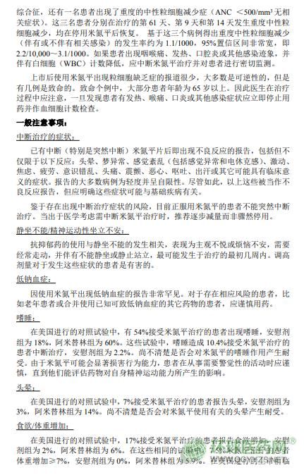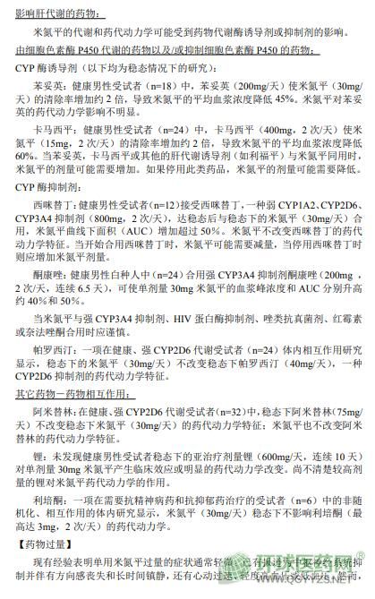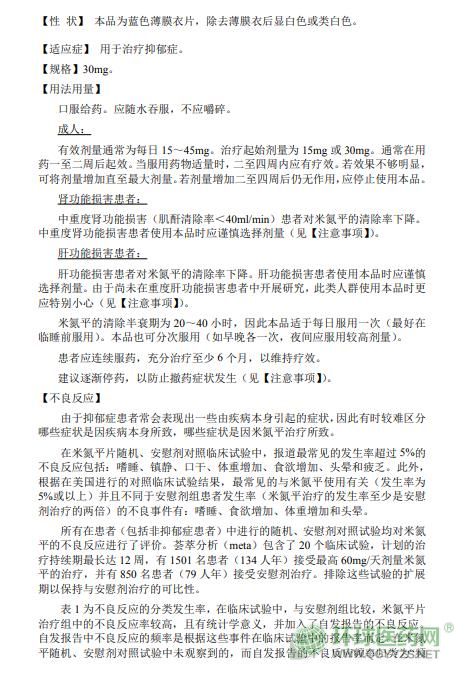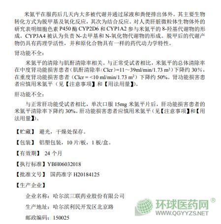 哈爾濱三聯(lián)米氮平片(米爾寧)說(shuō)明書文字版
