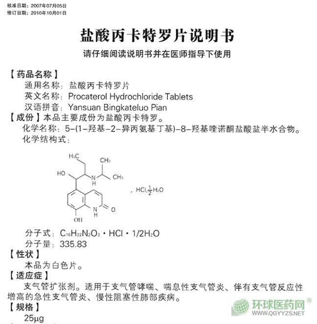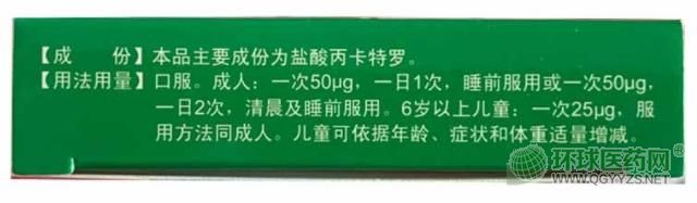 【藥品名稱】 鹽酸丙卡特羅片(迪冉)