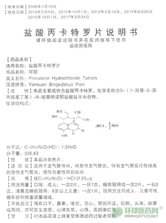 可朋鹽酸丙卡特羅片安徽環(huán)球說明書文字版