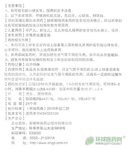 可朋鹽酸丙卡特羅片安徽環(huán)球說明書圖片版