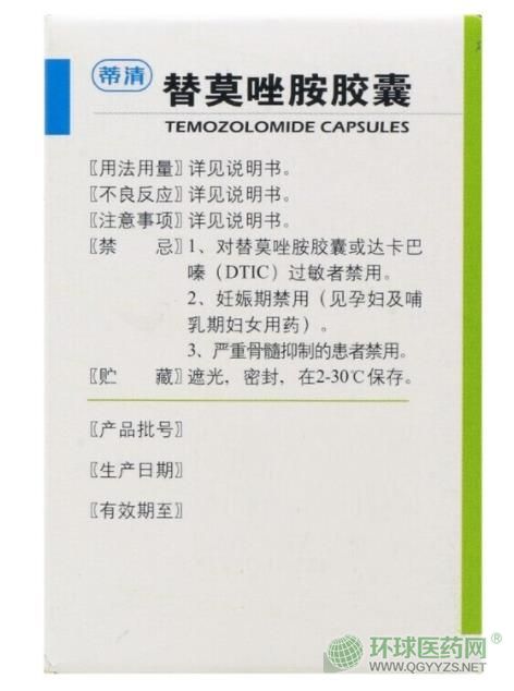 主要成份為替莫唑胺,其化學(xué)名為:3,4-二氫-3-甲基-4-氧代咪唑[5,1-d]并1,2,3,5-四嗪-8-甲酰胺。